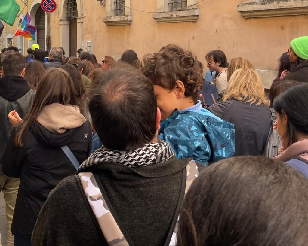 “Frequento il quinto anno dell’indirizzo sportivo al liceo ‘Marconi’ – ha preso poi la parola uno studente –. Non so se lo sapete ma da noi, un giorno a settimana è dedicato alle scienze motorie e per noi del quinto è il venerdì. E oggi sono qui senza i miei compagni perché la mia classe ha preferito non perdere un giorno di sport. Quindi sono qui da solo, ma consapevole che la mia famiglia è da altre parti a protestare e che siamo dalla parte giusta della storia, così come lo sono tutti i presenti qui oggi. Perciò vi ringrazio tutti dal profondo del cuore”.