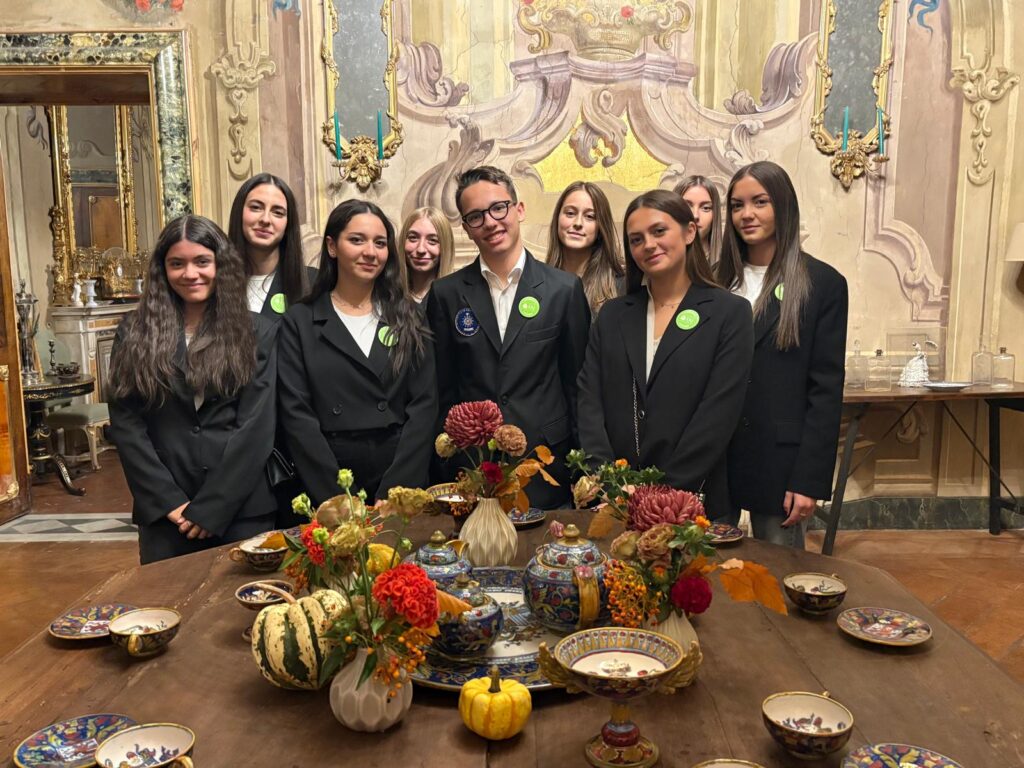 Gli studenti, preparati dalla docente di storia dell’arte e vicepreside della scuola, Maria Carla Cicciola, hanno condotto i visitatori alla scoperta del palazzo, guidandoli verso la scalinata interna che conduce al piano nobile che si apre, dopo una prima sala di raccordo, sul salone d’onore, con decorazioni di ispirazione tardo-barocca e la cui altezza occupa uno spazio di due piani. Tra le curiosità mostrate dai ragazzi dell’indirizzo Turistico e Cambridge della scuola, anche due insolite finestrelle, che spariscono alla vista grazie a un realistico trompe-l’oeil, tramite le quali la servitù osservava lo svolgersi degli eventi, in modo da poter essere presente solo quando necessario.