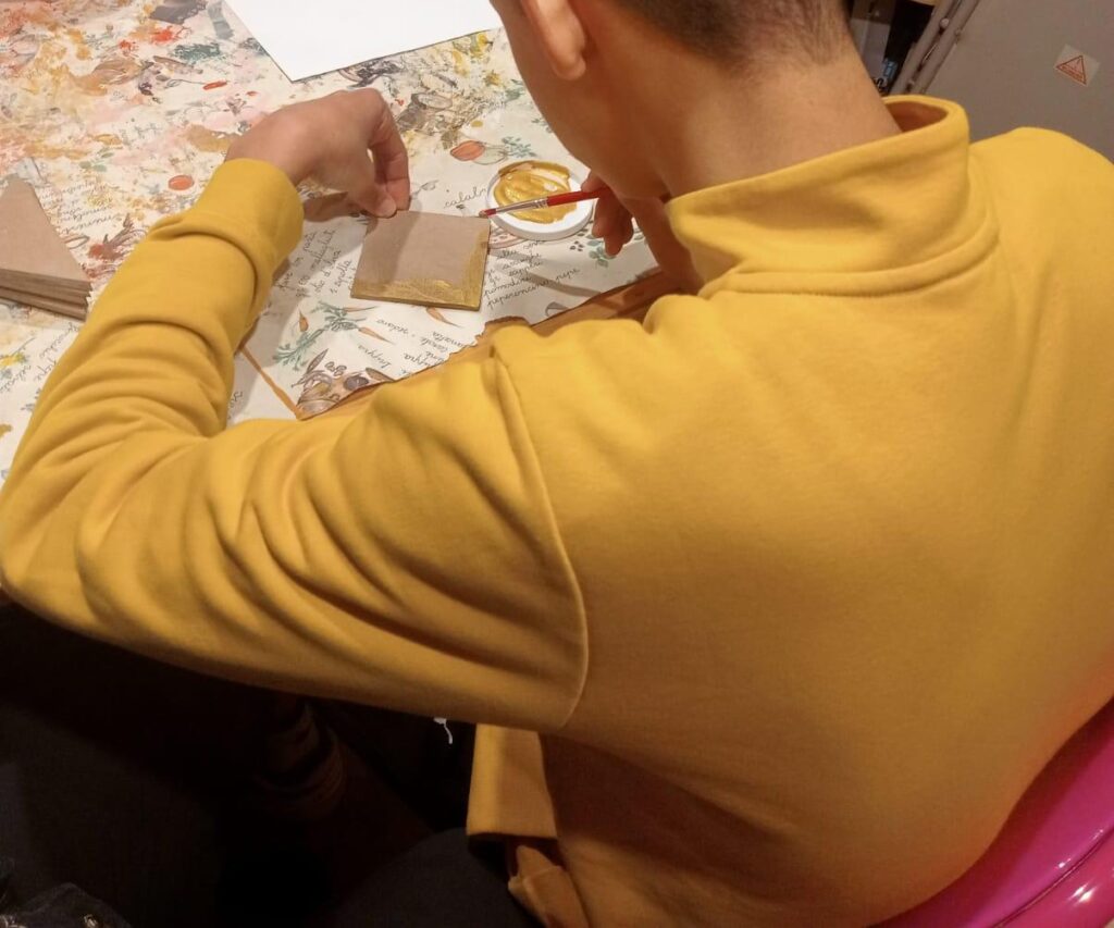 Un progetto di artigianato che si è svolto nel laboratorio de “Gli Elfi” di Giorgio Raffaelli e Daniela Zipeto, che nel loro spazio nella zona delle Conce realizzano piccole opere in legno, stampe d’arte, maschere in carta pesta e carta collata e manufatti artigianali di ogni tipo.