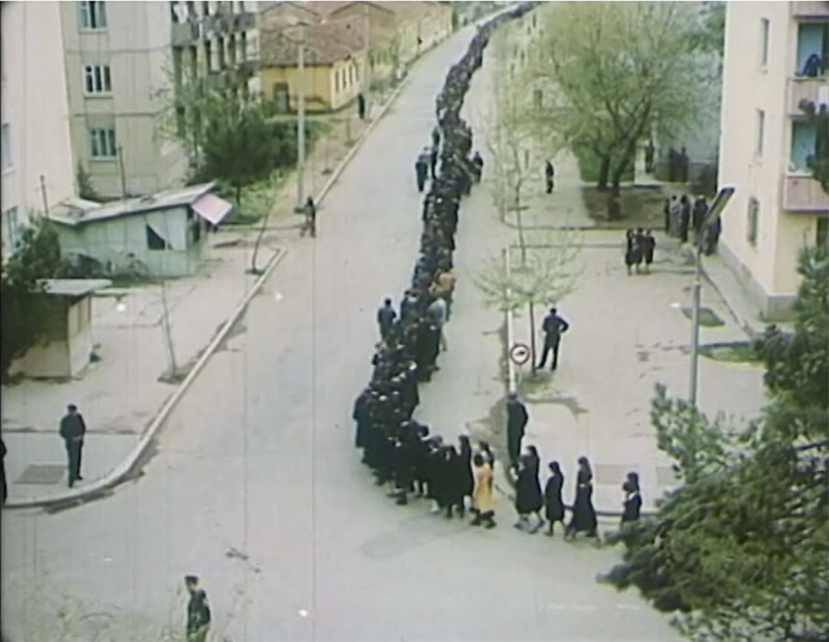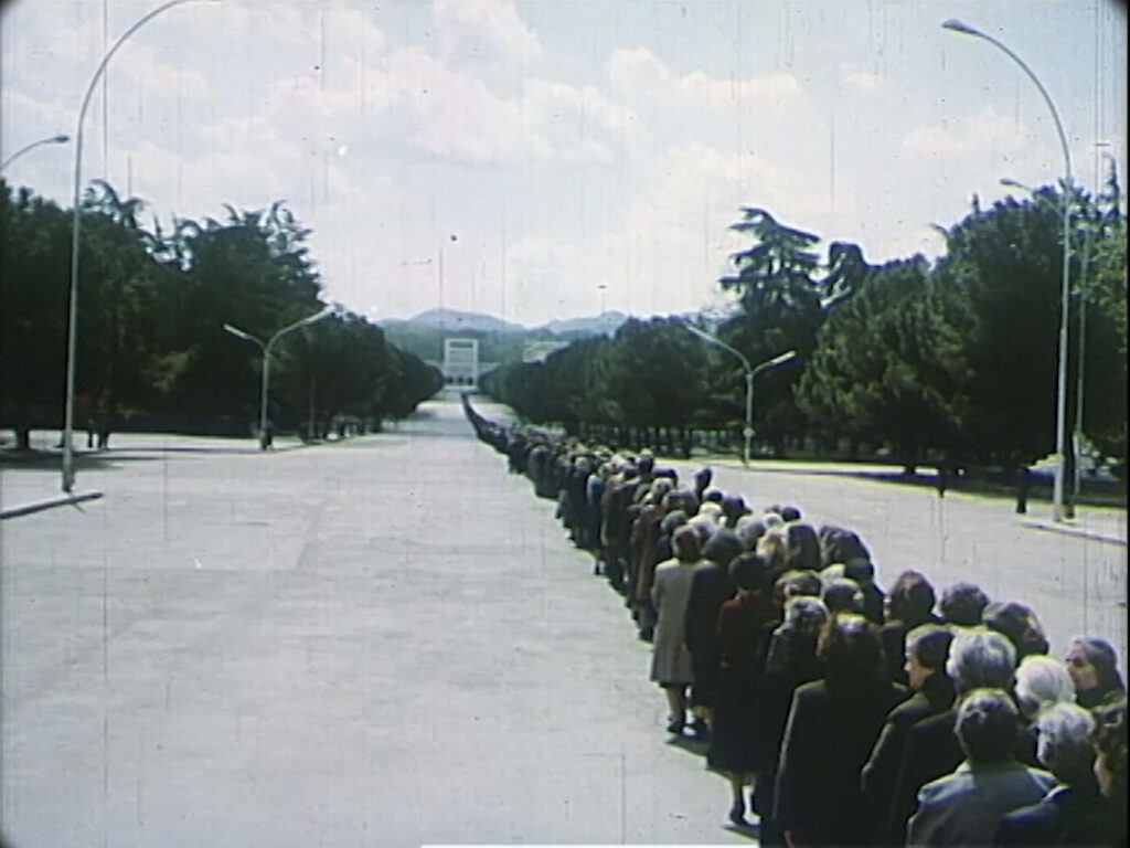Al centro del percorso espositivo c’è un’opera video del 2017, vero fulcro della mostra. Paci monta materiali d’archivio e filmati televisivi ufficiali da Albania, Cina, Corea del Nord, Unione Sovietica e Jugoslavia, componendo una scenografia  del lutto collettivo. Immagini di bare vuote, folle in lutto e gesti codificati, tra gli anni Venti e Ottanta del 1900, in cui si evocano le morti dei leader comunisti, eliminando però ogni riferimento diretto ai defunti. Rimane solo il popolo, con i suoi gesti ripetuti che oscillano tra emozione individuale e messa in scena di potere.